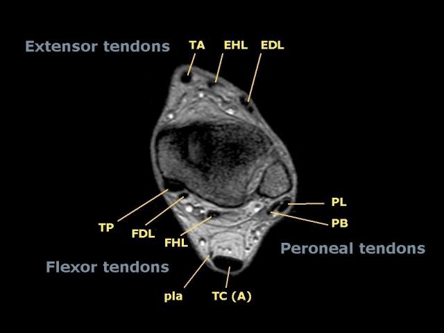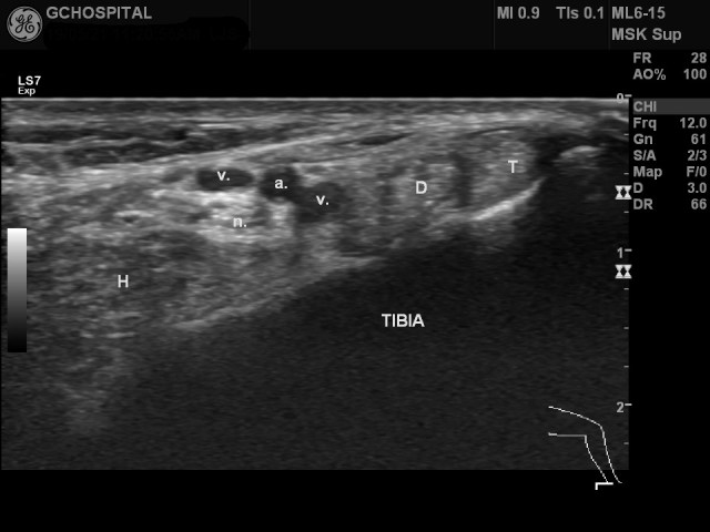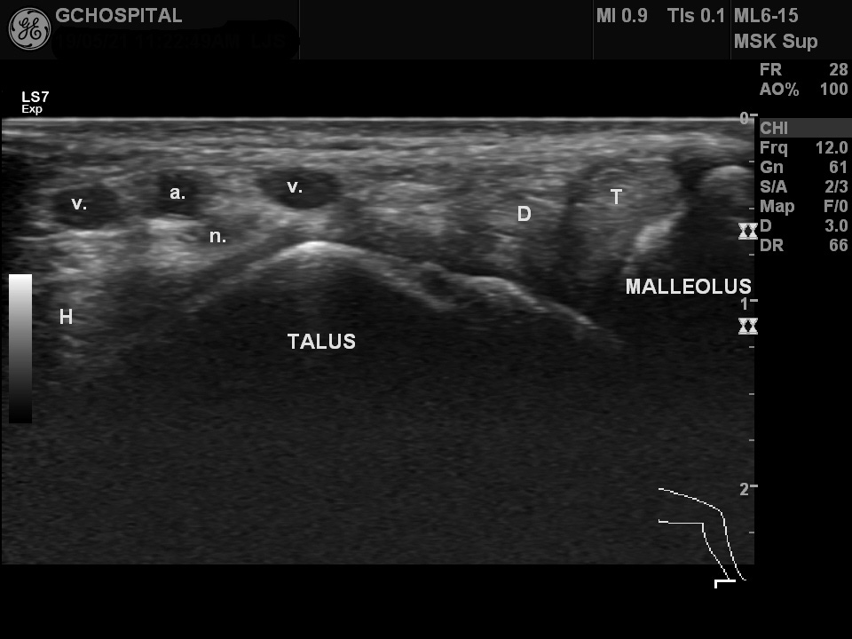 T : tibialis posterior tendonD : flexor digitorum longus tendon