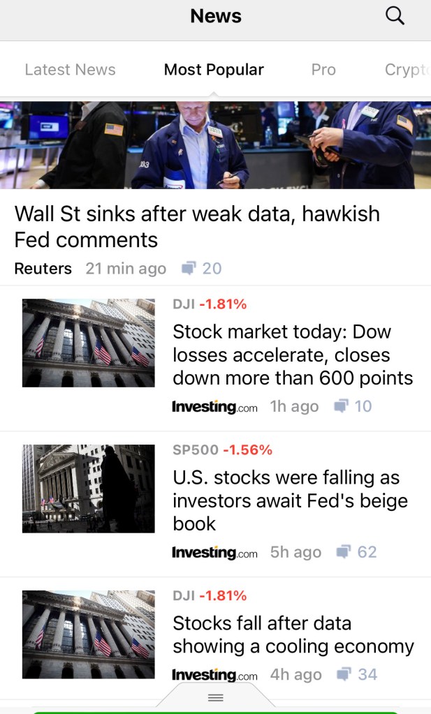 어제 미국시장의 움직임을 단적으로 상징하는 인베스팅 닷컴 화면입니다. 주식시장은 다우지수를 중심으로 의미있게 하락했습니다. 그 배경을 연준이사의 발언(금리 더 올려야 한다) 때문으로 분석합니다. 이런 영향 때문인지 중국의 리오프닝 이슈에도 불구하고 유가는 떨어졌습니다.