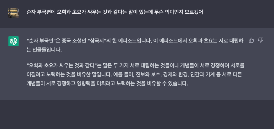 와,,, 그런데, 순자 부국편이 소설이고 삼국지의 한 에피소드라고 이야기를 하네요. 오획과 초요가 삼국지에 나오는 인물이랍니다. 게다가 오획과 초요가 싸우는것 같다는 것이 서로 경쟁하며 노력하는 비유라고 합니다. 이번에는 오획과 초요라는 인물 자체에 대해서는 어떤 답을 하는지 물어봤습니다.
