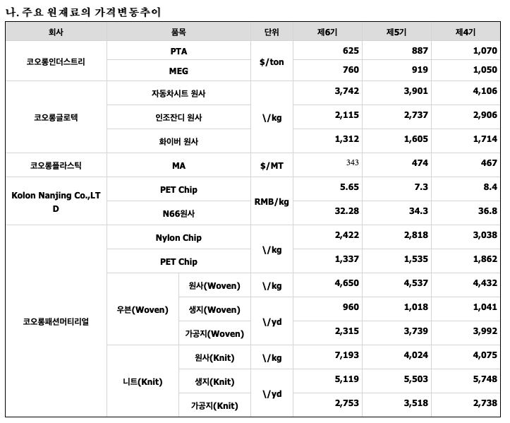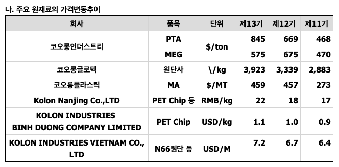 이 부분에 대해서는 다음 글에서 코오롱인더스트리에서 발표한 IR자료를 통해서 좀 더 분석해보겠습니다.