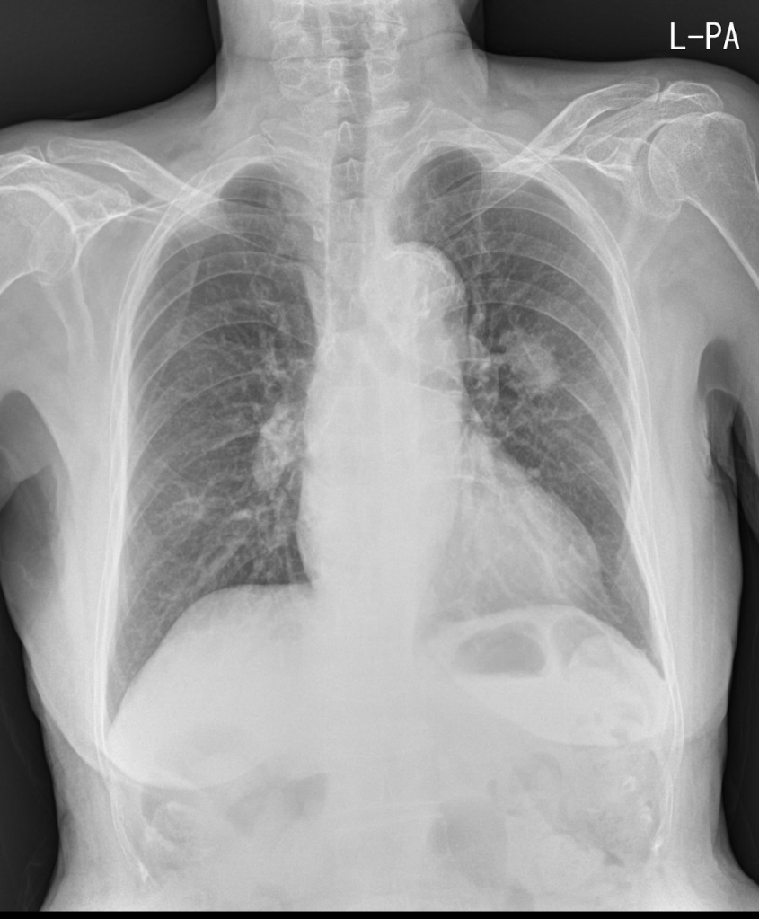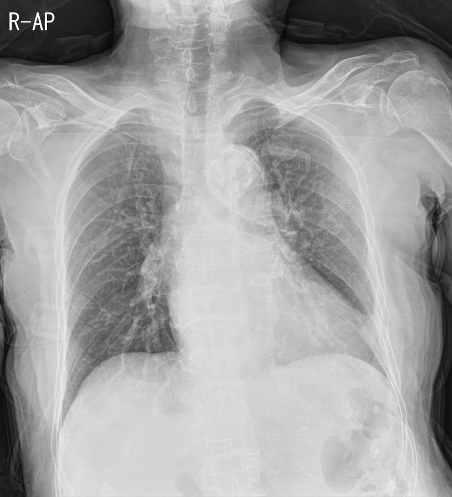 폐에 병변이 의심되는 경우 가장 기초적인 영상검사는 단순흉부X선검사입니다. 특별한 제약사항이 없다면 기본적으로 서있는 자세로 Chest PA view영상을 촬영하는 것이 원칙인데, 왜 AP view가 아닌 PA view를 촬영해야 하는지를 극명하게 보여주는 사례 같아서 올려봅니다.