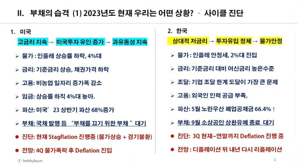 그러나, 그렇게 늘어난 미국내 투자의 수혜는 빅테크를 비롯한 대기업들에 집중되어있고, 중소기업들은 오히려 파산이 증가하고 있다는 사실은 한창 투자를 받아 스태그플레이션이 진행중인 미국조차도 신용사이클의 흐름에서 자유로울 수 없다는 걸 시사하는 것 같습니다. 모든 부채문제는 신용문제로 연결되며, 모든 신용문제는 부동산과 모기지로 전이되어서 터진다는 언급도 숙고해볼 문제입니다.