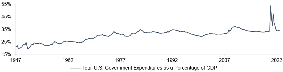 지난 2022년 내내 수많은 시장참여자들, 특히 엄청난 돈을 굴리는 채권시장과 주식시장의 큰손들이 하나같이 돈을 걸고 기다리던 경기침체와 이로 인한 연준의 피벗이 오기는 커녕, 이들의 기대와 정 반대로 과도한 유동성이 지속되면서 인플레이션과 기술주 위주의 상승장이 온 이유는 미 행정부의 상상을 뛰어넘는 공격적 재정지출 때문입니다.