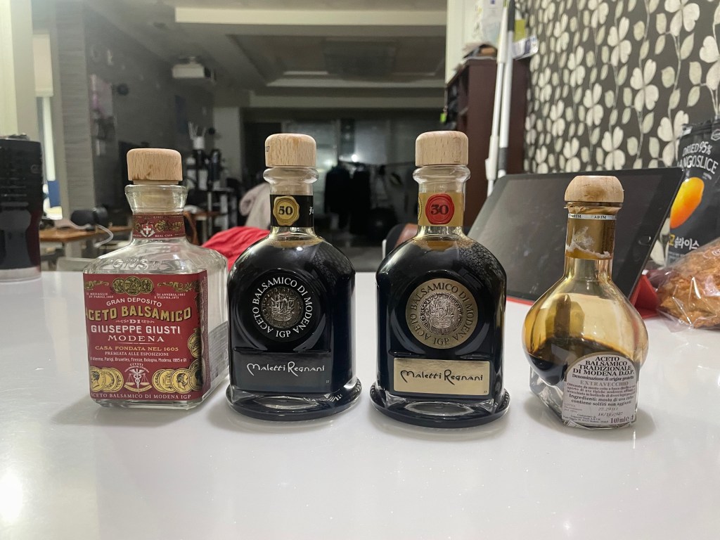 12년산 폰테베키오 DOP 인증 식초보다 25년산 엑스트라베키오 인증 식초가 더 산뜻하고 부드러운 맛이 났으며, 점도도 더 끈적였습니다. IGP인증이라고 해도 말레티레냐니 오로 30년산 발사믹 식초는 DOP인증 엑스트라베키오 식초보다 맛이 더 산뜻하고 자극이 덜했으며, 향도 좋았습니다. 말레티레냐니 파밀리아 50년산 발사믹 식초는 지금까지 먹어본 발사믹 식초들 중 가장 달콤하고 산뜻한 맛이 났으며, 초산함량이 다른 제품들과 같은 6%임에도 불구하고 톡 쏘는 느낌이나 식초냄새가 잘 느껴지지 않더군요.