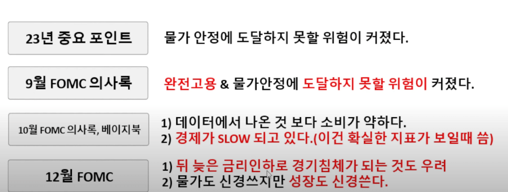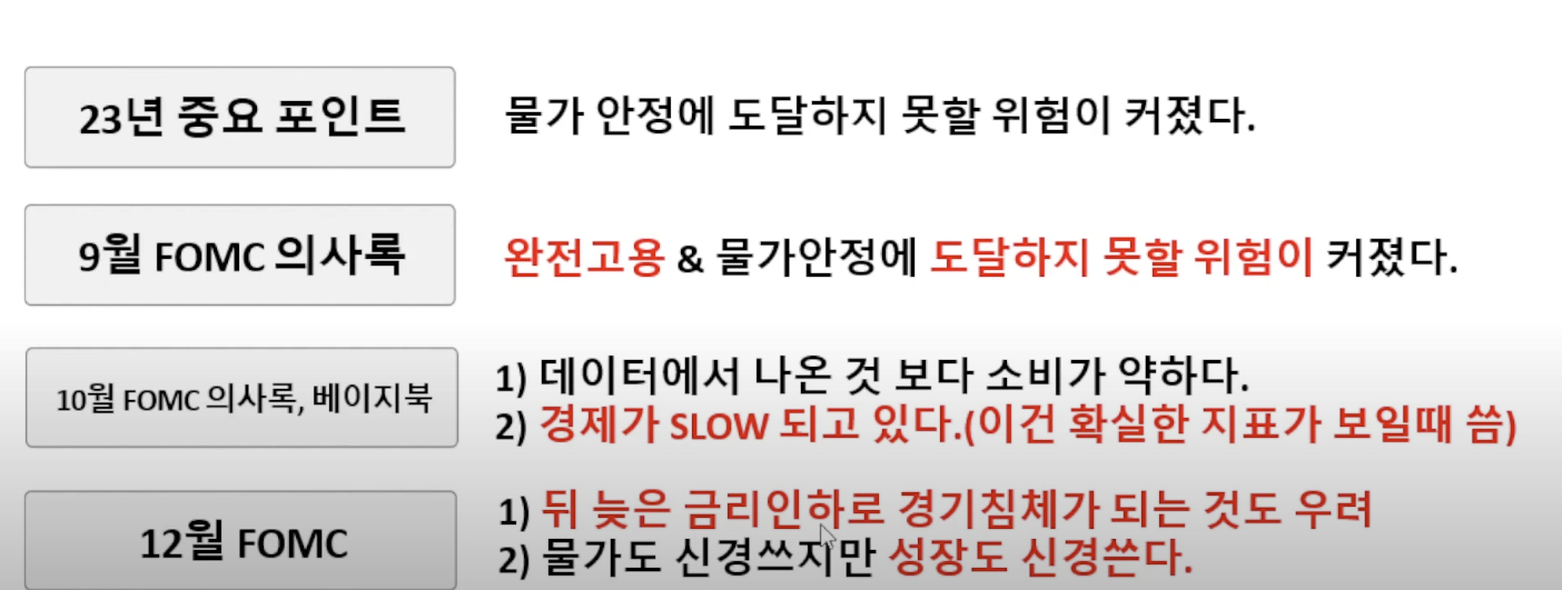 굳이 내년 1월5일이 아니더래도 조만간 경기가 둔화하고 실업율이 상승하기 시작하는 순간이 도래할 것이라 생각하고 거기에 대응하기 위해 너무 늦은 기준금리인하를 지양하겠다는 게 파월과 연준의 분명한 입장입니다. 이런 상황에서는 내가 어떤 전략을 짜야 살아남을 수 있는지를 깊게 고민해야만 합니다. 위의 유투브 영상을 봐도 유투버의 전략설정에 대한 고민이 영상 곳곳에 생생히 묻어나는 듯 합니다.