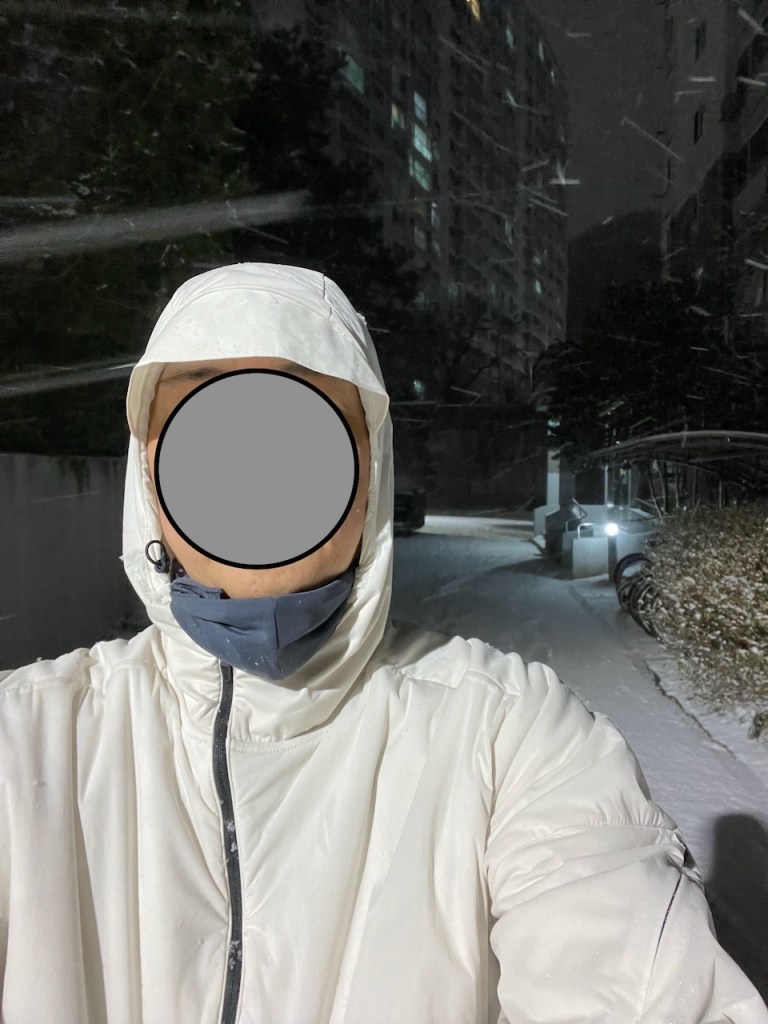 오늘 모처럼 많은 양의 눈과 꽤 매서운 바람이 불었습니다. 기온은 -5도로 많이 낮지 않았지만 바람이 강하게 불어서 쌀쌀했던 날이라 오랜만에 바람막이 대신 두툼한 자켓을 입고 뛰었네요.