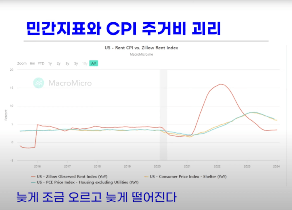 위의 도표는 미국 주택 렌트비 지표와 CPI 추세를 겹쳐놓은 것입니다. 보다시피 CPI는 주거비가 한번 크게 상승했다 다시 정상화 되가는 현재 추세를 제 때 반영하지 못합니다. 이러한 특성 때문에 CPI 자체는 실제 인플레이션 상황을 계속해서 뒤늦게 반영하고 있다는 사실을 연준도 잘 알고 있으며, 그래서 CPI보다 PCE가 더 중요하다고 강조하고 있습니다. 위의 유투브 영상도 그러한 CPI의 맹점을 지적하며, 이번에 나온 CPI 데이터를 가지고 인플레이션에 배팅하는 건 어리석은 짓이라고 설명합니다. 참고로 2월28일에 지난 4분기 PCE데이터가 발표됩니다.
