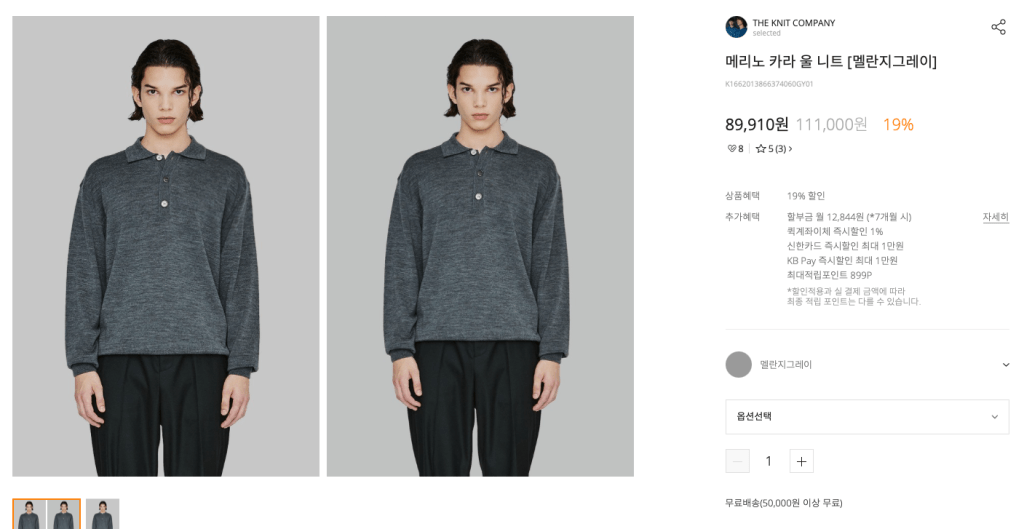 3. 더닛 컴퍼니 메리노 카라 울 니트 ( https://www.kolonmall.com/Product/K1662013866374060GY01 )