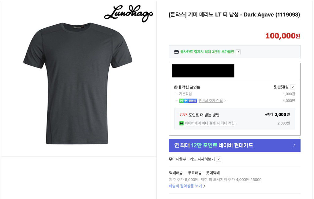 아웃도어용 메리노울 베이스레이어들을 찾다 그나마 합리적인(?) 가격에 구입할 수 있었던 제품입니다. 네이버 쇼핑에서 검색해보면 찾을 수 있고, 슈퍼파인 메리노울 로 만들었다고 홍보하는데, 실제 착용해보면 코오롱 HERO 나 룬닥스 기머 제품들보다는 약간(아주아주 약간) 까슬거리는 느낌이 들듯 말듯 합니다.