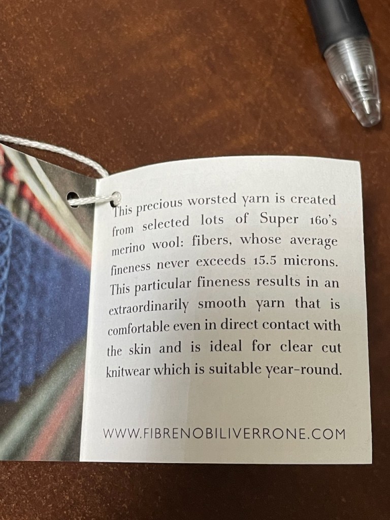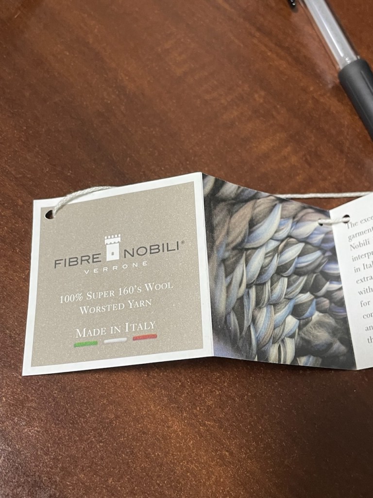 옷에 이런 택이 달려 있더군요. FIBRE NOBILI VERRONE, 찾아보니 로로피아나 소속 원단회사였습니다. 이 Fibrenobili에서 설명하고 있는 울 원단은 무려 15.5마이크론 이하 굵기의 슈퍼 메리노 울을 사용하고 있다고 밝히고 있습니다.