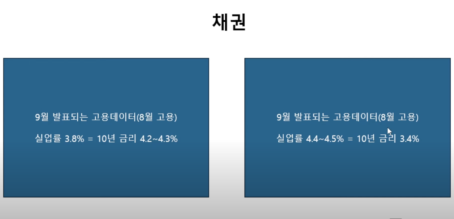 - 현재 미국채 금리가 떨어지는 건 “기대감” 때문이다. 이러한 기대감이 정답인지 오답인지 답안지가 나오는 게 9월 발표되는 8월 고용데이터다.