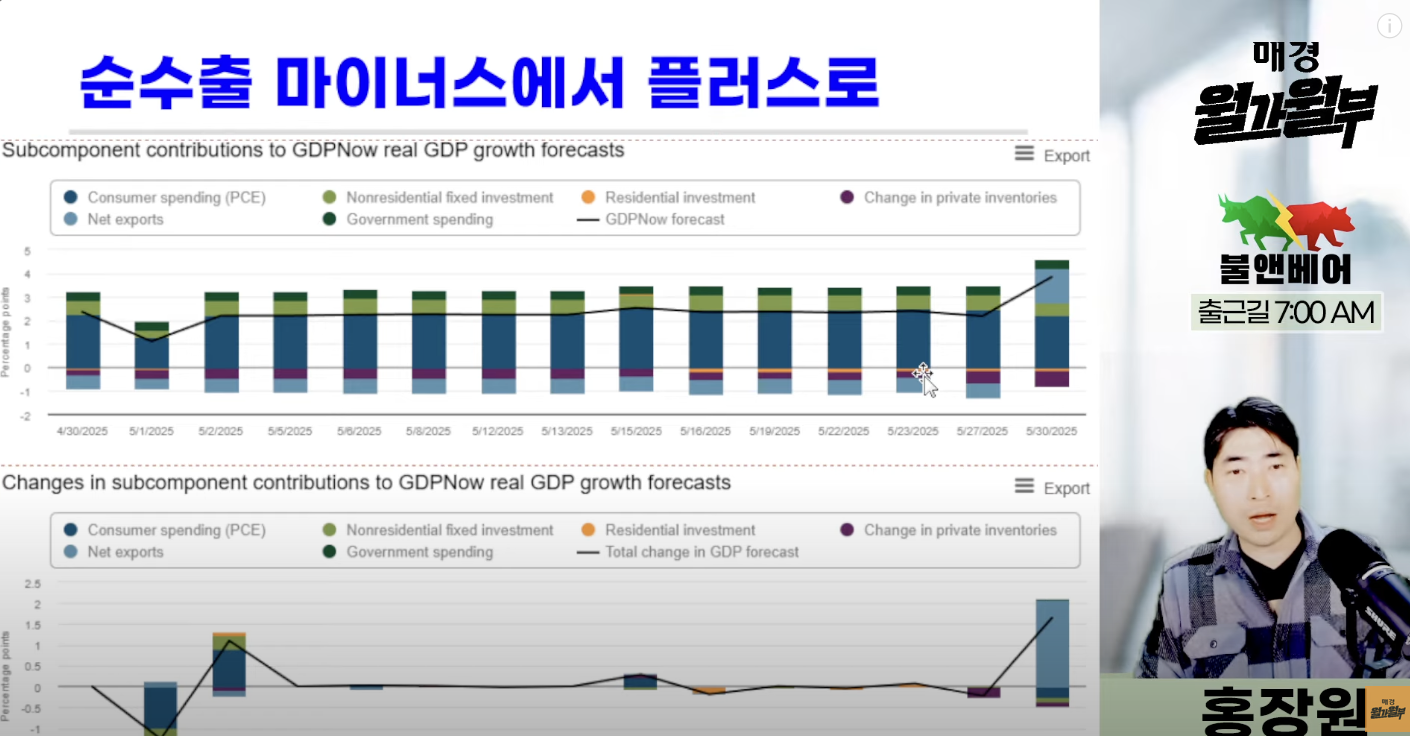 어쨋던 중요한 건 미국의 2분기 성장률은 관세전쟁의 여파로 일시적이나마 크게 올라갈 순수출의 영향으로 높게 나올 수 있겠지만, 우리가 주목하고 지켜봐야 하는 건 성장율 자체가 아니라 민간소비 및 민간투자의 영역이어야 한다고 생각합니다.