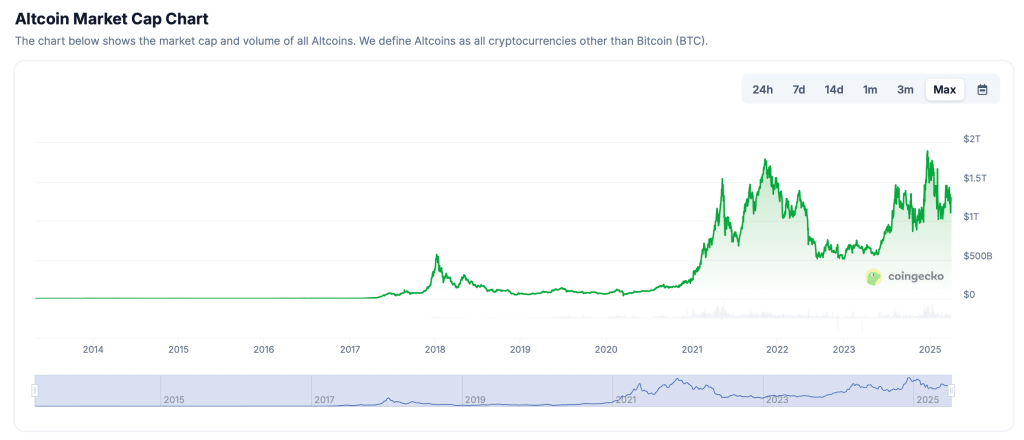 그런데, 직접 이 alt coin market cap 차트를 확인해보면 정말? 이라는 의심이 드는 것 같습니다.