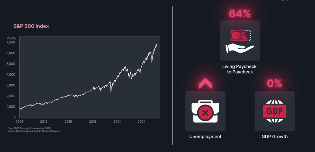 그런데, 이러한 주가상승의 이면에 실질적인 경제는 엉망이 되어가고 있는게 현재입니다. 고용과 성장 모두에서 주가상승과는 전혀 연동되지 않는 처참한 성적표가 나오고 있죠. 펀더멘털이 받쳐주지 않은 상태에서의 주가상승은 언제나 제자리로 돌아가는 결과를 보여줬습니다.