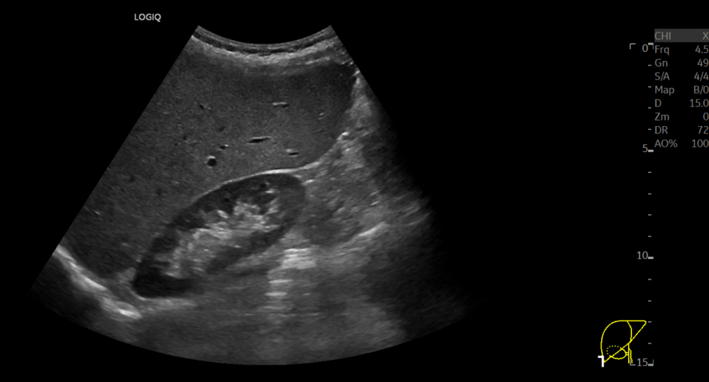 52세 남자환자로 알콜 의존증으로 꾸준히 술을 마시고 있습니다. 수년 전부터 계속 간수치 상승 및 만성 간염 진단을 받은 상태로, 최근 늑골골절로 내원하셔서 간초음파를 시행하셨습니다.